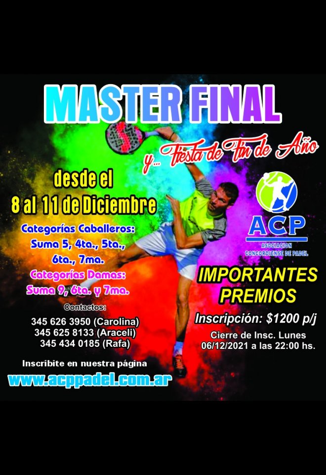 »» Evento: Master Final 2021 »» Localidad: Concordia »» Fechas: 08/12/2021 al 11/12/2021