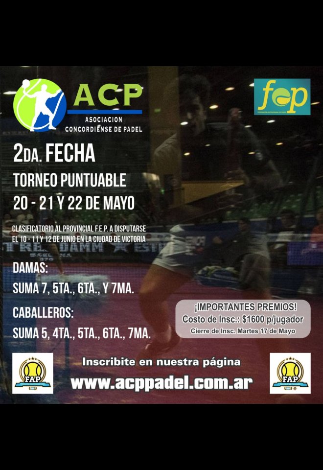 »» Evento: Clasificatorio Puntable - Etap 2 »» Localidad: Concordia »» Fechas: 20/05/2022 al 22/05/2022