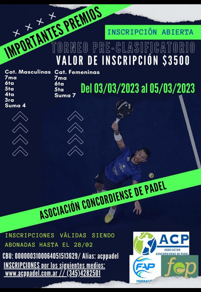»» Evento: PRECLASIFICATORIO PUNTUABLE »» Localidad: Concordia »» Fechas: 03/03/2023 al 05/03/2023