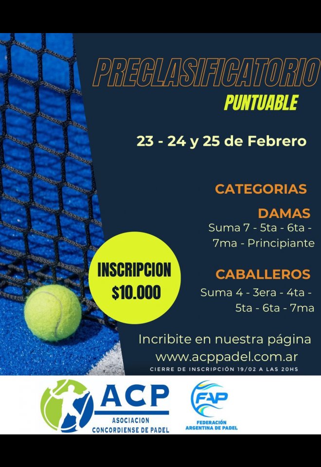 »» Evento: PRECLASIFICATORIO PUNTUABLE »» Localidad: Concordia »» Fechas: 23/02/2024 al 25/02/2024